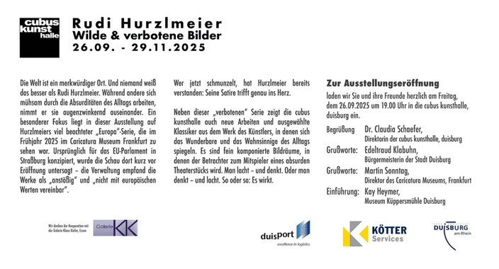 Rudi Hurzlmeier: Wilde & verbotene Bilder Cubus Kunsthalle, Duisburg, 26.09. - 29.11.2025 Ausstellungseröffnung: Freitag, 29. September 2025, 19 Uhr